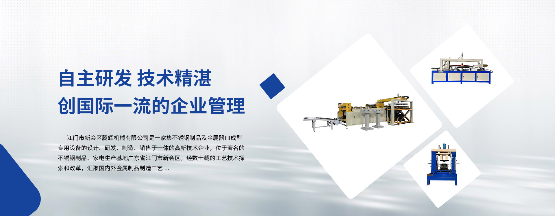 江門市新會區(qū)騰輝機械有限公司是一家集不銹鋼制品及金屬器皿成型專用設備的設計、研發(fā)、制造、銷售于一體的高新技術企業(yè),位于著名的不銹鋼制品、家電生產基地廣東省江門市新會區(qū)。經數(shù)十載的工藝技術探索和改革,匯聚國內外金屬制品制造工藝。